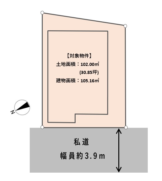 ■接道:北西側私道幅員約3.9m